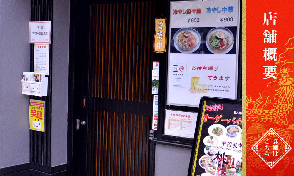 料理長は東京で修行し出店した本格中国料理の匠。長く皆様に愛される中国料理をご提供しております。親しみやすく低価格ですが、北京ダッグやフカヒレなども低価格でご用意させて頂きます。大好評のオーダーバイキングや、桃園の味をご堪能頂けるコース料理もご用意しております。お一人様はもちろん、ご家族やお集まりなどどうぞご来店お待ちしております。